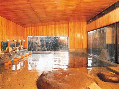 嵐の湯の室内は、十五種類の薬鉱石と天然温泉ミネラルが満たされ、