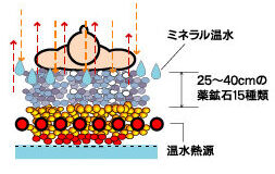 理学博士・川田薫博士との共同研究により、十五種類の鉱石を25〜50センチの厚さで敷き詰め、